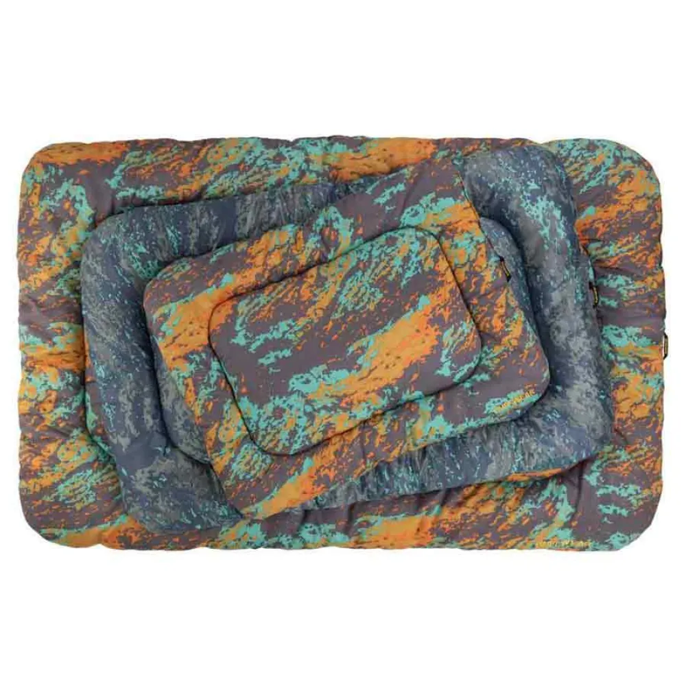 Basecamp is where the bed is. The Basecamp Dog Bed creates a sense of place for dogs on the go as a comfortable, easy-packing, easy-cleaning sleeping mat. It gets its cush from recycled polyester on the inside, and it delivers on cozy with a soft microsuede on the outside. Low-profile corner bolsters and dog crate-friendly dimensions mean your dog has a versatile and minimal landing spot for settling down and squeezing in a snooze before, after, or en route to their next adventure.