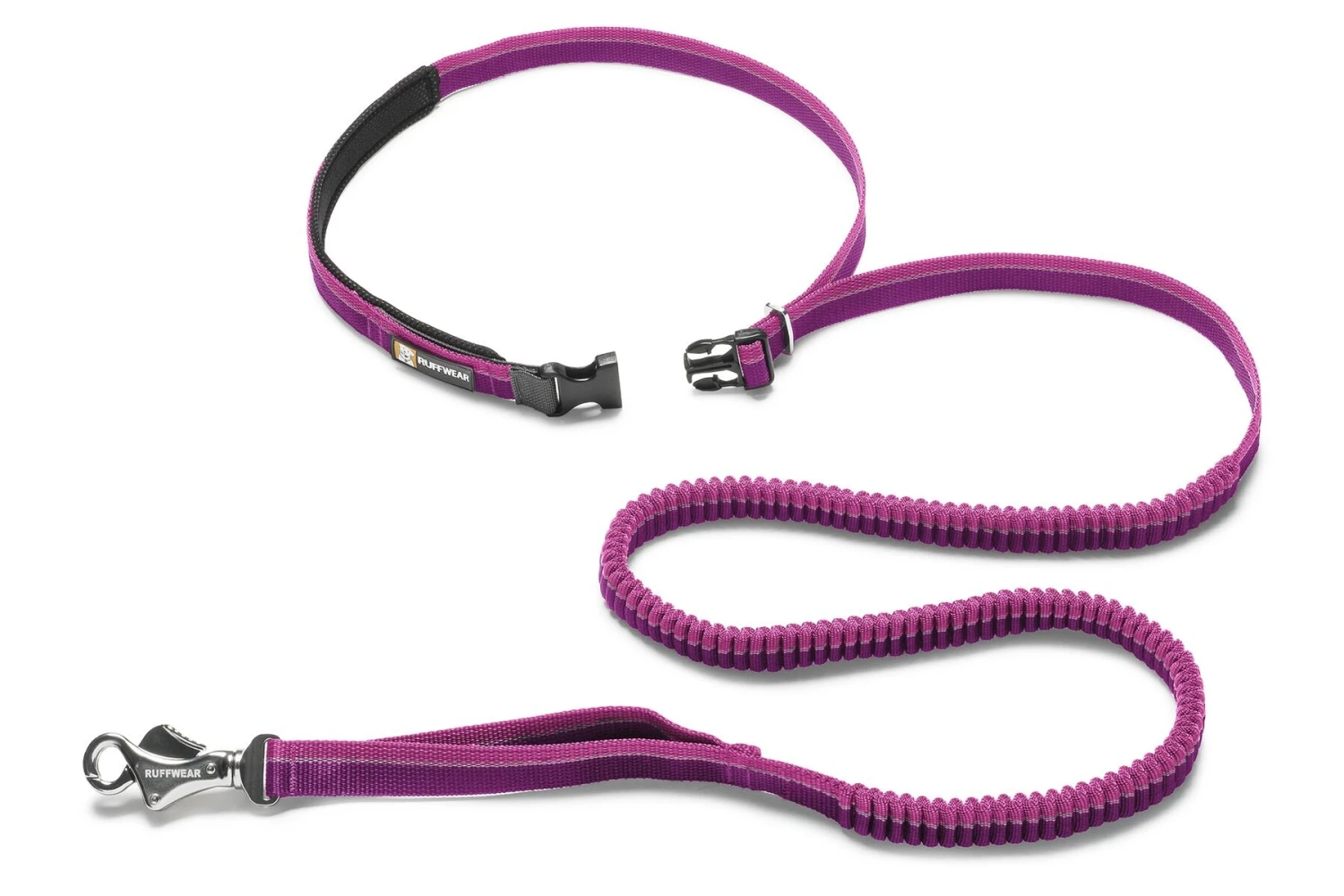 The Ruffwear Roamer is an adjustable stretch-webbing running dog running lead that can be hand-held or worn around the waist for a dynamic hands-free dog lead experience. Wavelength™ stretch webbing keeps humans and canines connected while allowing an extended range for roaming and exploring. The user-friendly side release buckle, reinforced with an aluminum Uniloop, provides exceptional strength, while Ruffwear’s unique Talon Clip™ offers a strong and secure leash-to-collar attachment.