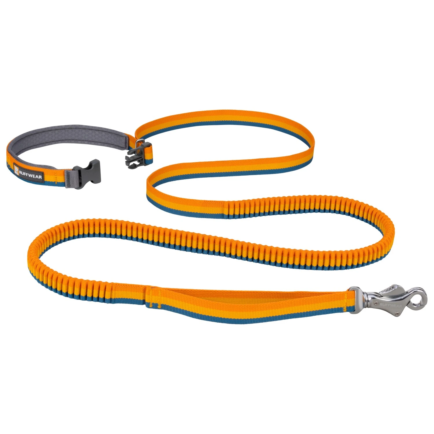 The Roamer is an adjustable stretch-webbing running leash that can be hand-held or worn around the waist for a dynamic hands-free leash experience. Wavelength stretch webbing keeps humans and canines connected while allowing an extended range for roaming and exploring. The user-friendly side-release buckle, reinforced with an aluminum Uniloop, provides exceptional strength, while Ruffwear’s unique Talon Clip offers a strong and secure leash-to-collar attachment.
